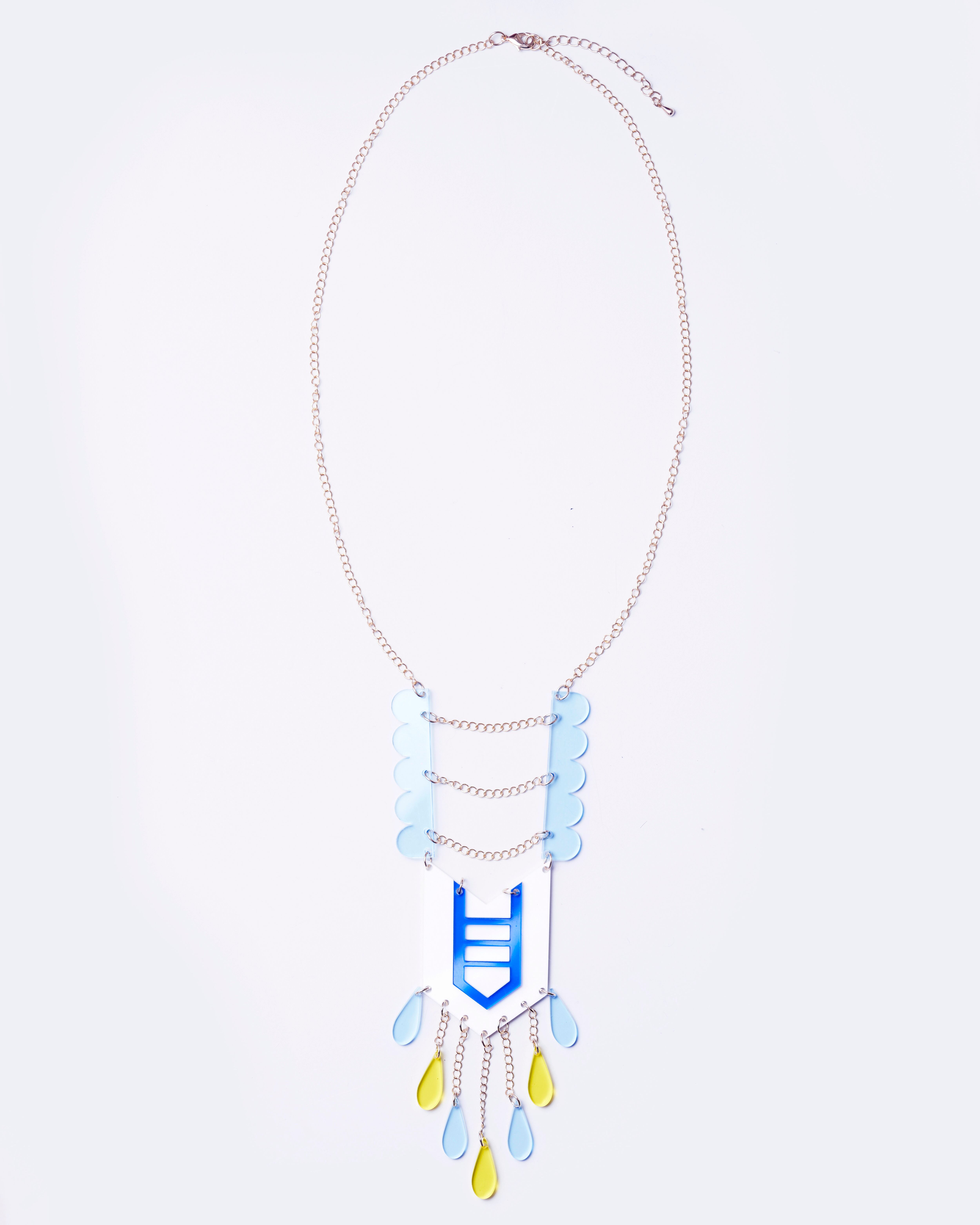 トルクメニスタンのテケ族をイメージしたアクセサリー。長細い雲のようなパーツと、揺れ感のある雫パーツが印象的なネックレス。ラフなTシャツはもちろん、プレーンなブラウス、シャツワンピースに合わせても。清潔感を損なわずコーデを締めるアクセサリー。